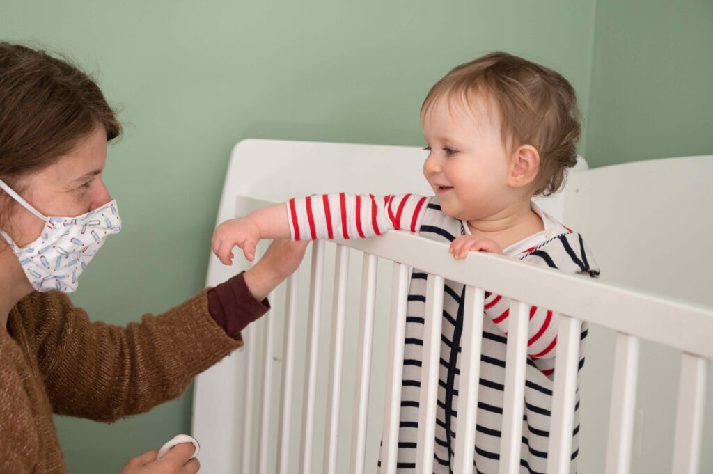 Le masque a donc un impact fort sur cette période de la petite enfance où les bases de la communication et du langage se mettent en place. Certes, les jeunes enfants sont résilients et dans un environnement familial sollicitant, ils vont compenser les manques vécus à la crèche. D’autres auront plus de mal, ceux qui sont en situation de vulnérabilité comme les enfants en situation de handicap ou ceux qui ne parlent pas français chez eux : « J’accueille un petit garçon de presque 3 ans qui parle uniquement chinois avec ses parents chez lui. Il répète peu de mots en français. Un jour j’ai voulu retirer mon masque en me tenant à distance et en observant mes lèvres quand je prononce des mots simples, il les a répétés juste après…. alors qu’avec le masque il ne parvient pas à répéter ses mêmes mots »